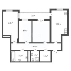 3-х комнатная квартира 74.5 кв.м. на 3-м этаже в ЖК Видный.