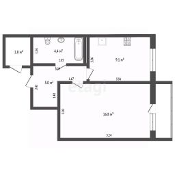 - Просторная комната — 16,8 м² с выходом на не застеклённый балкон (идеально для цветов или утреннего кофе!)