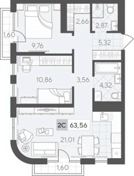 Продаётся 2-комнатная квартира в строящемся доме (3.1 (Николая Глебова, 2к1)), срок сдачи: IV-кв. 2026, общей площадью 63.56 кв.м., на 11 этаже. Новый жилой комплекс "Скандиа. Квартал в Комарово Парк" от застройщика "Скандиа" расположен в Калининском округе Тюмени в районе ул. Николая Глебова.