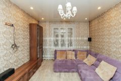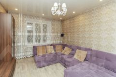 Функциональная планировка включает просторную кухню-гостиную с выходом на застеклённую панорамными окнами лоджию, большие изолированные комнаты правильной формы и просторный коридор. Ремонт выполнен качественно. На полах в комнатах и коридоре постелен паркет. На стенах поклеены обои, натяжные потолки с точечным освещением и люстрами. Кухонный гарнитур фирмы "Мария" добавляет изысканности данному предложению. Установлен кондиционер, который останется в подарок; также при продаже останется вся встроенная бытовая техника "Electrolux", встроенный шкаф-купе и другая мебель, которую готовы оставить по желанию покупателя. Ванна и туалет совмещены, выложены современным красивым кафелем. Заниженные подоконники на высоте 60 см от пола. Окна квартиры выходят на солнечную сторону, открывая красивый вид.