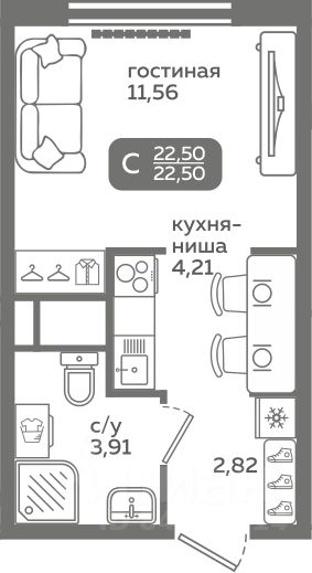Прямая продажа от застройщика! Продается студия в строящемся ЖК "Меридиан Слобода", срок сдачи: I-кв. 2027, общей площадью 22.5 м², на 16 этаже из 21. Площадь кухни — 4.21 м².
