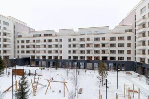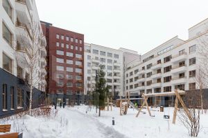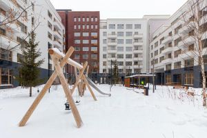 Дом переменной высотности (5-9 этажей) с кирпичной отделкой. Приватный двор без машин с игровой площадкой и зонами для отдыха создаст идеальные условия для семейной жизни.