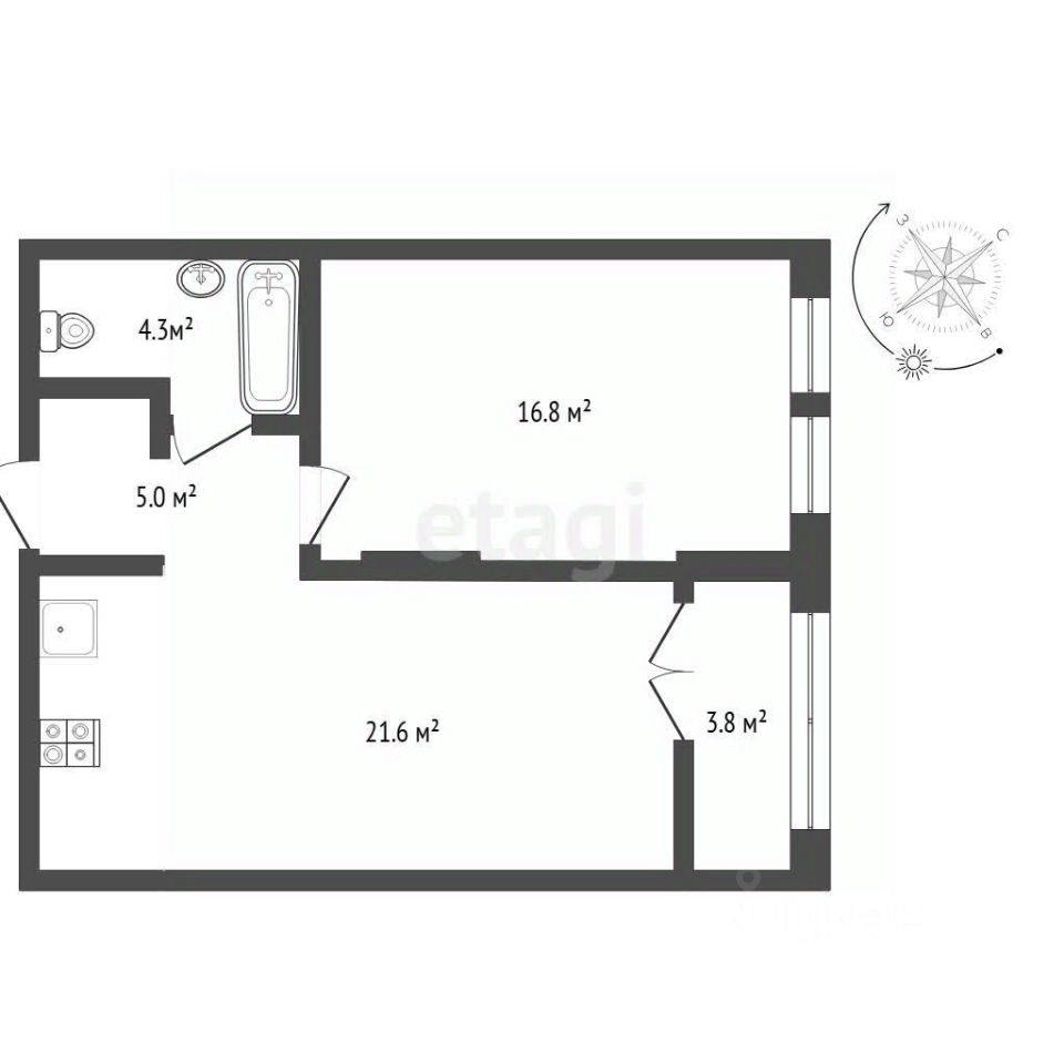 Просторная студийная зона (кухня-ниша 5,1 м² + столовая 16,47 м²) позволяет создать стильное и функциональное жилое пространство без перегородок.