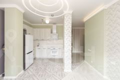 Включает в себя-комфортный коридор со встроенным шкафом до потолка, по правую руку мастер спальня со своим санузлом и выходом на панорамный балкон. По левую руку мини сердце дома,где разводка обогрева полов и тд,связанное с управлением дома. Кухня -гостиная впечатляет своими размерами:11,88м2 зона кухни и кухонного гарнитура,а в продолжении 13,64м2-зона обеда и встречи всей семьи. +вокруг огромного окна установлены до потолка места для хранения важных вещей. В квартире еще один просторный санузел и две раздельные комнаты для еще 2-х членов семьи! Очень много света и простора!