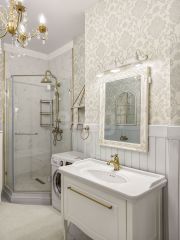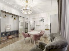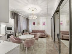 • Дизайнерский ремонт: Выполнен по индивидуальному проекту с использованием только качественных современных материалов. На полу — ламинат, а стены оформлены обоями и декоративной штукатуркой.