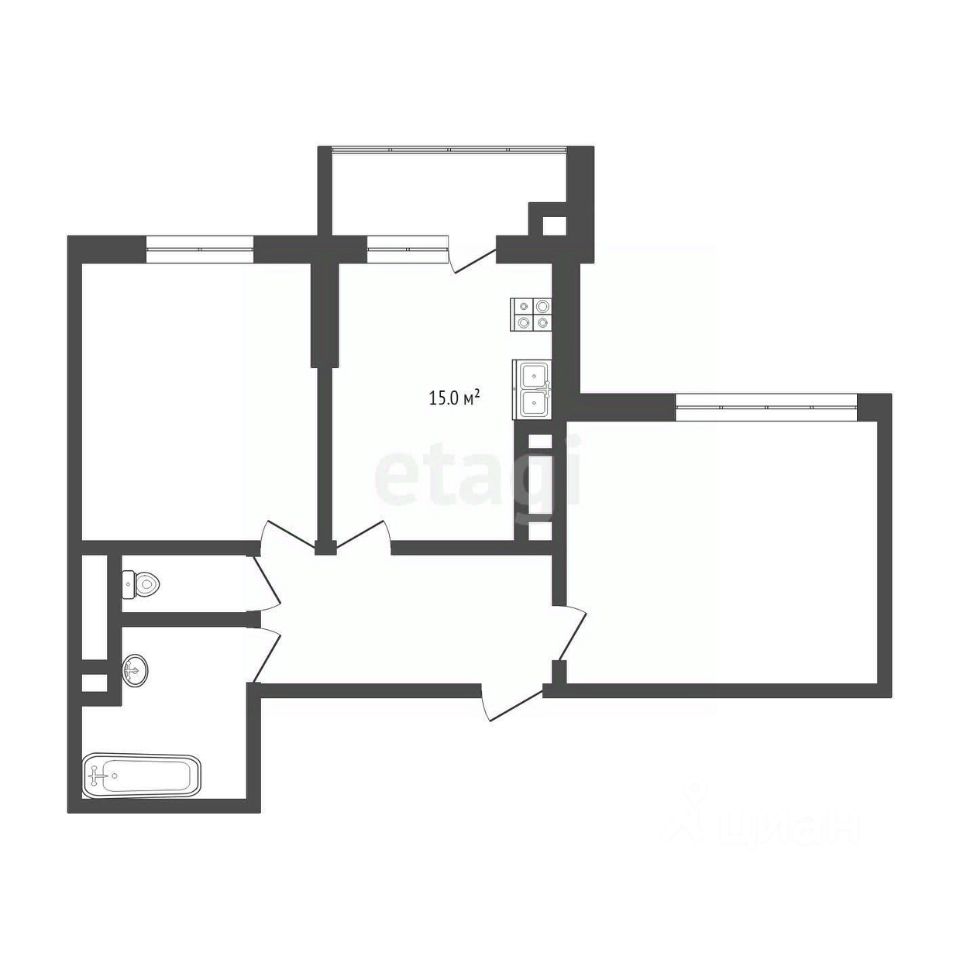 • Комфортная планировка: Просторная кухня-гостиная с выходом на балкон и две уютные спальни.
