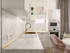 Кухня: При продаже остается стильный кухонный гарнитур, который включает встроенный холодильник, варочную панель, посудомоечную машину, микроволновую печь и духовой шкаф — готовьте с удовольствием!
