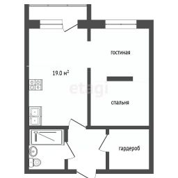 кухня-гостиная 18м2, комната зонирована на спальню и гостиную, с/у совмещен в кафеле, обустроена отдельная гардеробная.