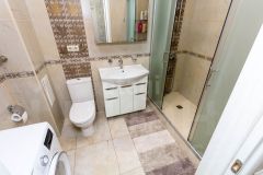 При продаже все, что вы видите на фото остается: качественный, новый , функциональный кухонный гарнитур со всей встроенной бытовой техникой, холодильник, обеденная зона, диван, кровать, сантехника в с/у , стиральная машина.