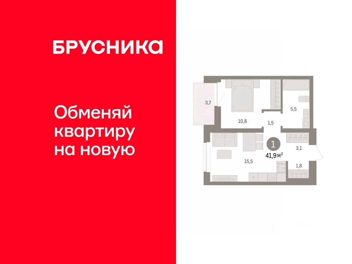 Квартира с кухней-гостиной и одной спальней в жилом районе "Речной порт". Особенности планировки: балкон, гардеробная, предчистовая отделка.