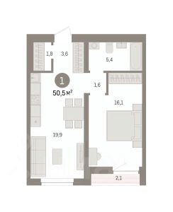 Квартира с кухней-гостиной и одной спальней в жилом районе "Речной порт". Особенности планировки: гардеробная, лоджия, предчистовая отделка.