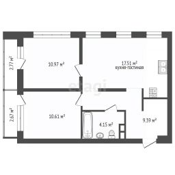Общая площадь53,4 м²