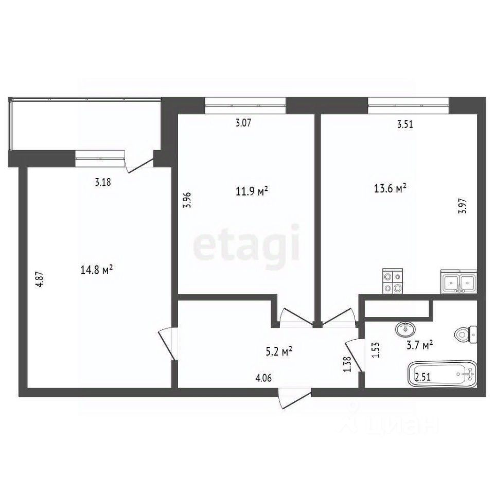 Продается двухкомнатная квартира на 10 этаже жилого комплекса "Ленинград". Общая площадь 54 кв. м включает просторную гостиную 14.8 кв. м, изолированную спальню 11.9 кв. м, кухню 13.6 кв. м с современным гарнитуром и санузел 3.7 кв.м с водонагревателем. В прихожей (5.2кв.м) и спальне установлены вместительные шкафы-купе. Квартира с качественным косметическим ремонтом: ровные стены со светлыми обоями, ламинат в комнатах, керамическая плитка в кухне и санузле.