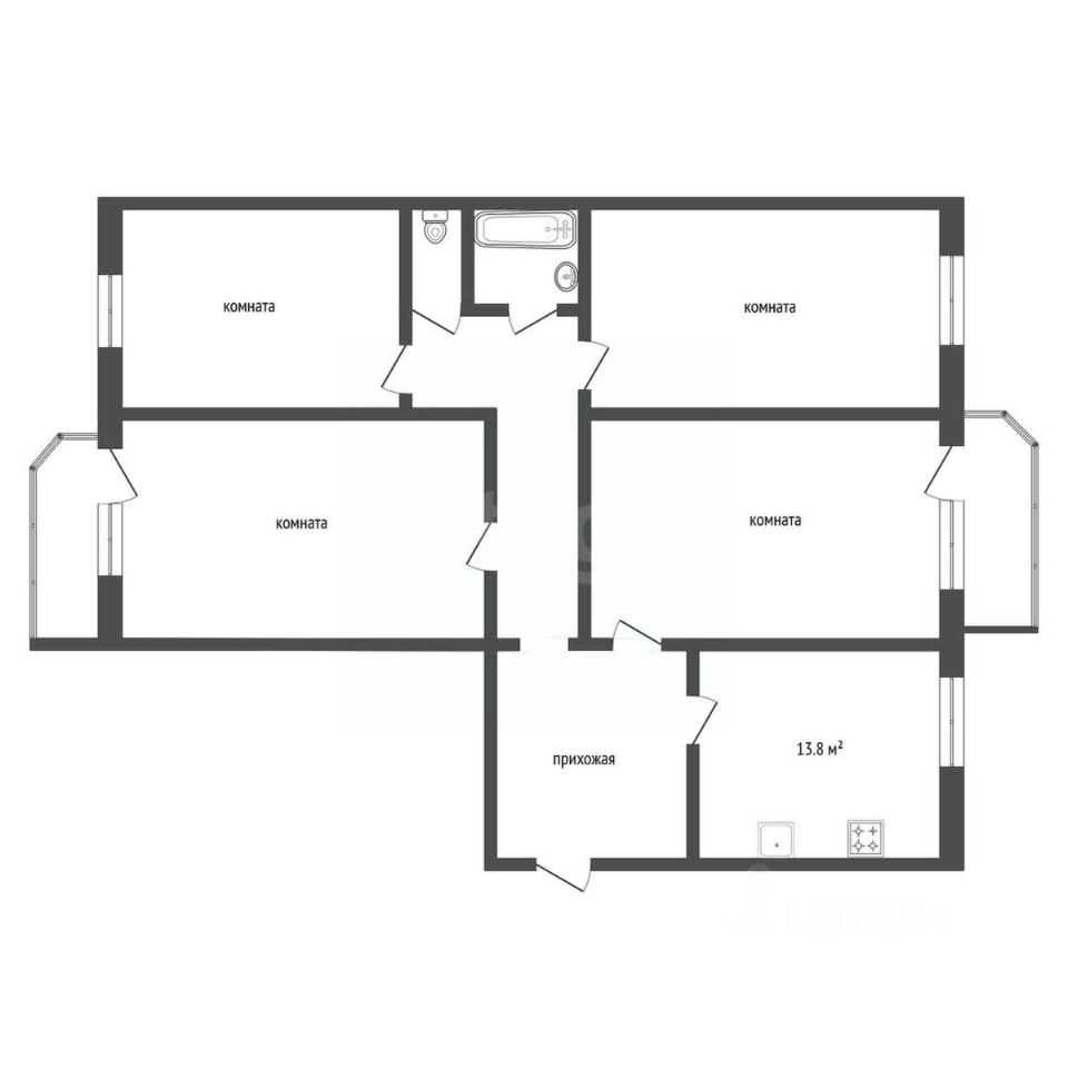 Просторная четырехкомнатная квартира площадью 106,3 м² расположена на 5 этаже 9- этажного дома с лифтом.