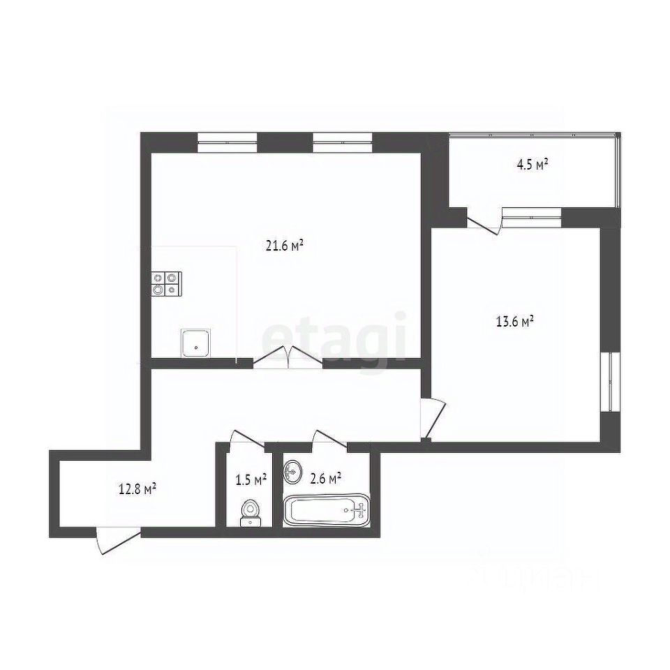 Общая площадь51,1 м²