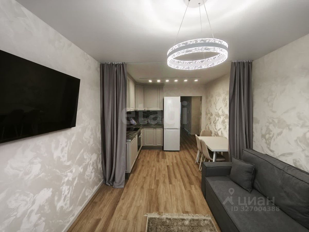О КВАРТИРЕ. Квартира полностью готова к проживанию. Общая площадь 47,72 кв.м., кухня-гостиная 18,56 кв.м, спальня 13,5 кв.м. Выполнен ремонт по дизайн-проекту, после которого никто не жил. На полу ламинат, на стенах красивые качественные обои, потолки натяжные. Квартира продается с мебелью и техникой. Остается кухонный гарнитур, электроплита, холодильник, духовой шкаф, диван, телевизор, стол, стулья, стиральная машина, двуспальная кровать, шкаф. Имеется вместительная гардеробная. Санузел совмещен, обложен кафелем, установлен тропический душ. Из окон открывается прекрасный вид на две стороны.