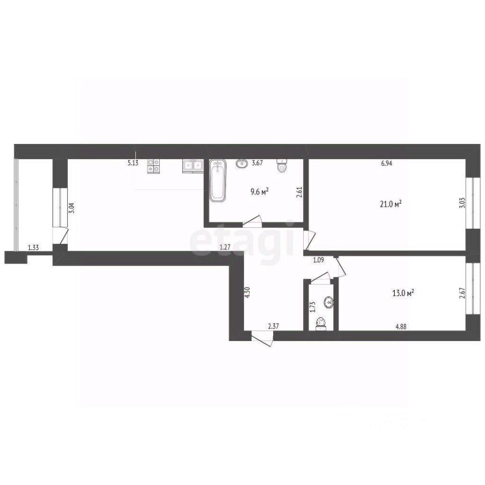 Комфортные параметры: Высота потолков 2,7 м. Два раздельных санузла.