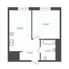 Планировка 1+ включает в себя просторную кухню-гостиную, изолированную спальню и стильный совмещенный санузел.
