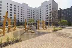 Придомовая территория комплекса просто впечатляет: здесь вы найдете уютные зоны для отдыха, современные детские площадки, площадку для скейтборда и ворк-аута, а также баскетбольную площадку. Ландшафтная подсветка создаёт атмосферу уюта и безопасности в вечернее время.