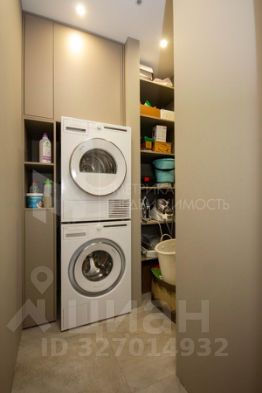 Мебель и техника подобраны под интерьер: эргономичные шкафы, вместительные системы хранения и встроенная техника сохраняют пространство. В квартире установлена премиальная бытовая техника Miele и ASKO, включая встроенную кофемашину и винный шкаф — всё для комфортной и современной кухни.