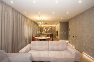 Продается квартира с дизайнерским ремонтом и мебелью в ЖК Ньютон. Площадь квартиры — 94 м², из них кухня — 42 м². 1 собственник, обременений нет. Вся мебель остаётся.