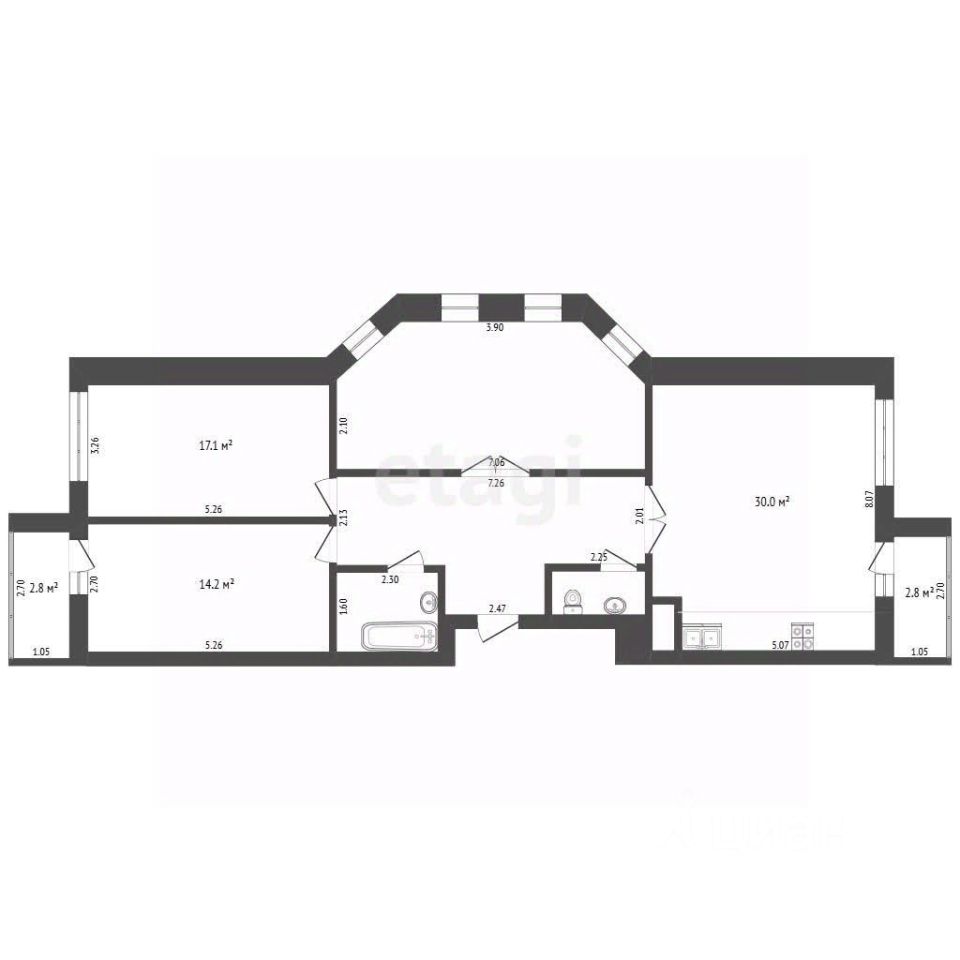 • Кухня-гостиная 30 м² — сердце квартиры. Место для семейных обедов, приёма гостей и уютных вечеров. Огромное пространство для творчества и дизайна.