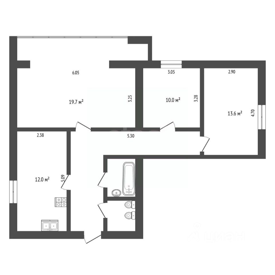 Планировка типа "распашонка" с окнами на две стороны обеспечивает отличную инсоляцию и проветривание. Три изолированные комнаты и раздельный санузел создают комфортные условия для жизни большой семьи. Две комнаты и кухня выходят в тихий, ухоженный двор с детскими площадками, что гарантирует спокойную атмосферу и безопасность.
