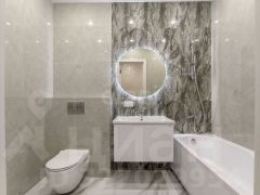 В квартире выполнен ремонт по дизайн-проекту. По мимо этого были замены после застройщика: стены во всех комнатах заменены с гипсокартона на газобетон, заменена полностью электропроводка, разводка и освещение, мастер выключатели, разводка под сантехнику. Установлен водонагреватель, вентиляция, сплит система кондиционирования в каждой комнате, теплые подоконники в зоне эркера, теплый порог при выходе на балкон. Установлены металлические входные двери с ламинированным покрытием, энергоэффективные пластиковые окна с тройным стеклопакетом. Дом оснащен скоростными лифтами премиального бренда, а система телеметрии автоматически передает показания счетчиков в управляющую компанию, избавляя от необходимости самостоятельного контроля.