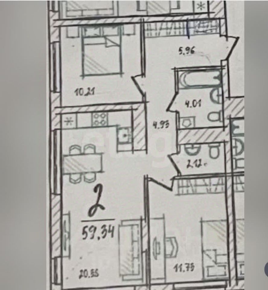 Общая площадь: 59.34 м²