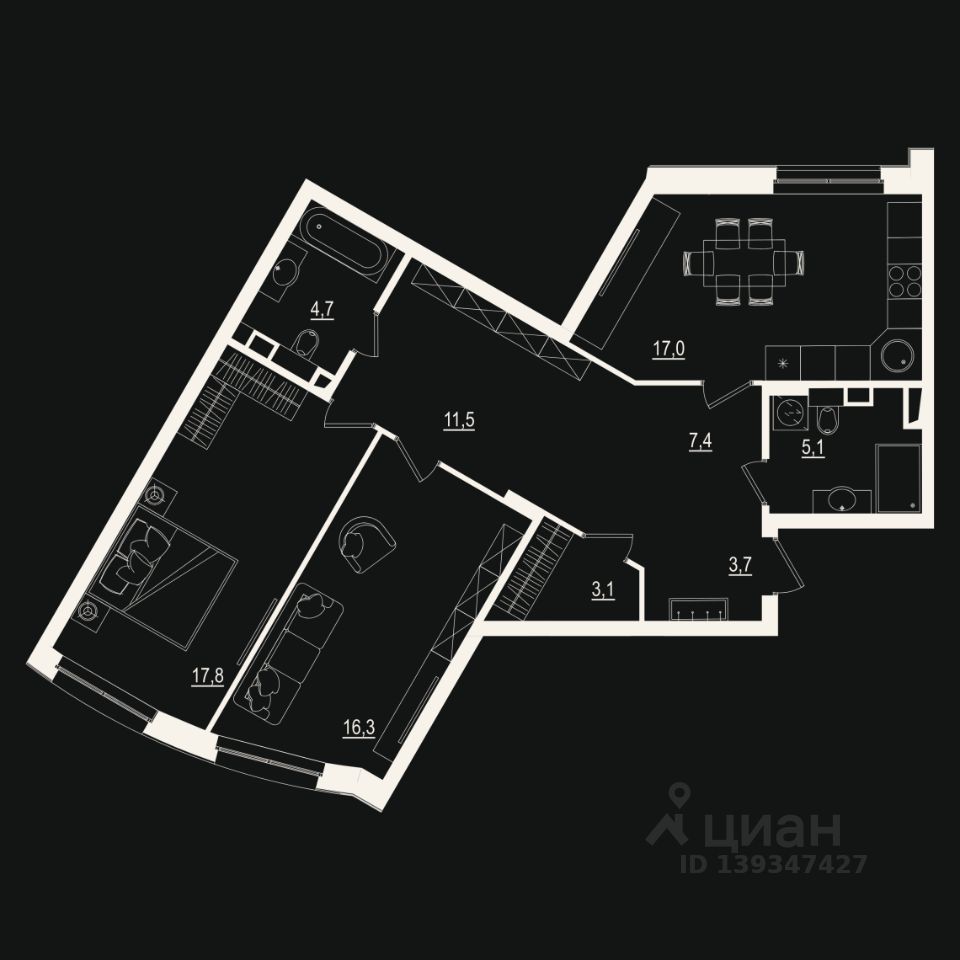 86,6 м²