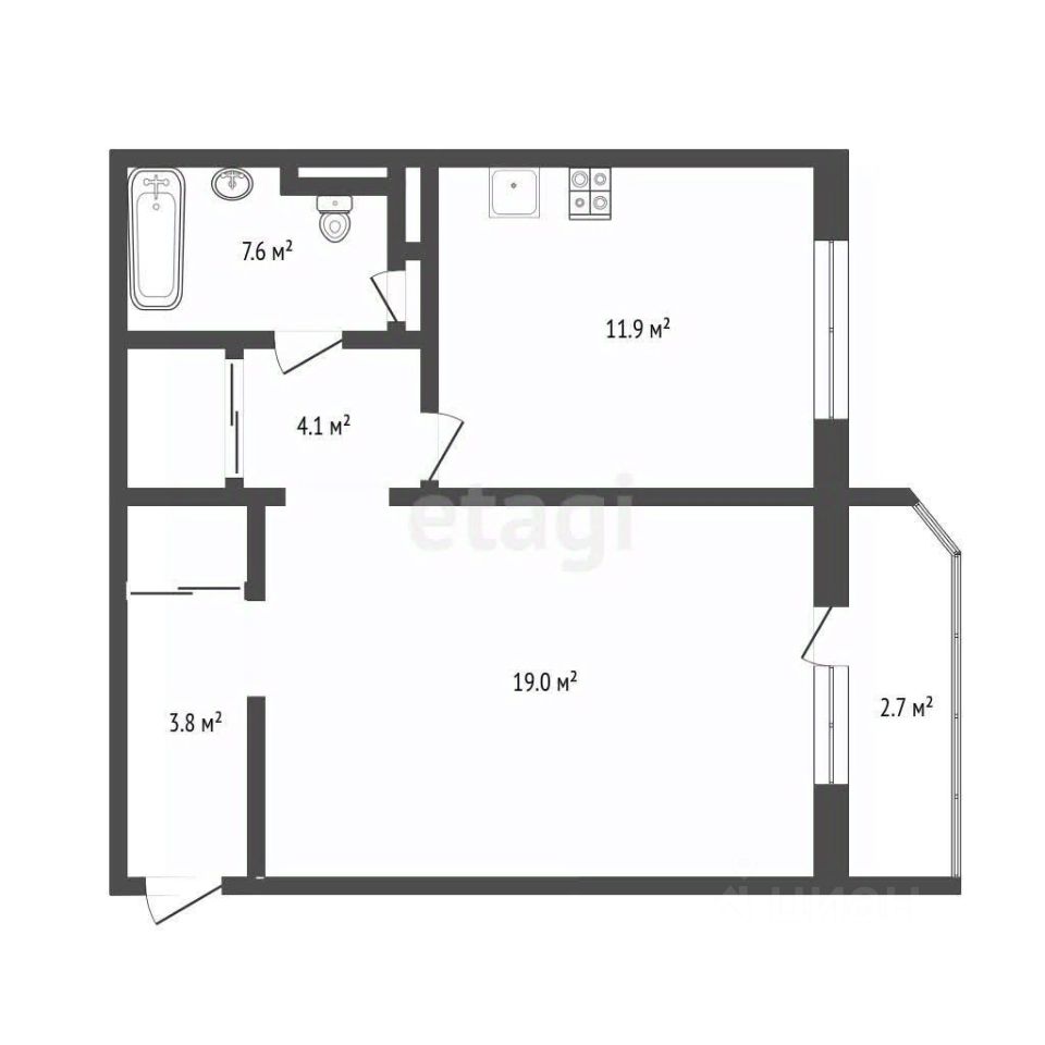 - Площадь 46.5 кв.м