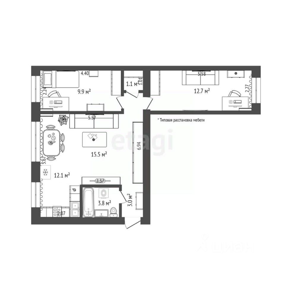 Вашему вниманию представляем уютную 3-х комнатную квартиру современного формата, преимуществом которой является просторная кухня-гостиная 27,6 кв.м., где Вы с комфортом сможете устраивать вечерние посиделки с Семьей и Друзьями. Более того квартира - распашонка, что, безусловно, также является изюминкой, позволяя иметь разный вид из окон и удобство в проветривании.