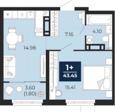 1-комн. квартира с предчистовой отделкой в ЖК "Прео" на 11 этаже. Общая площадь: 45.25 кв.м. Высота потолков 2.7 м.