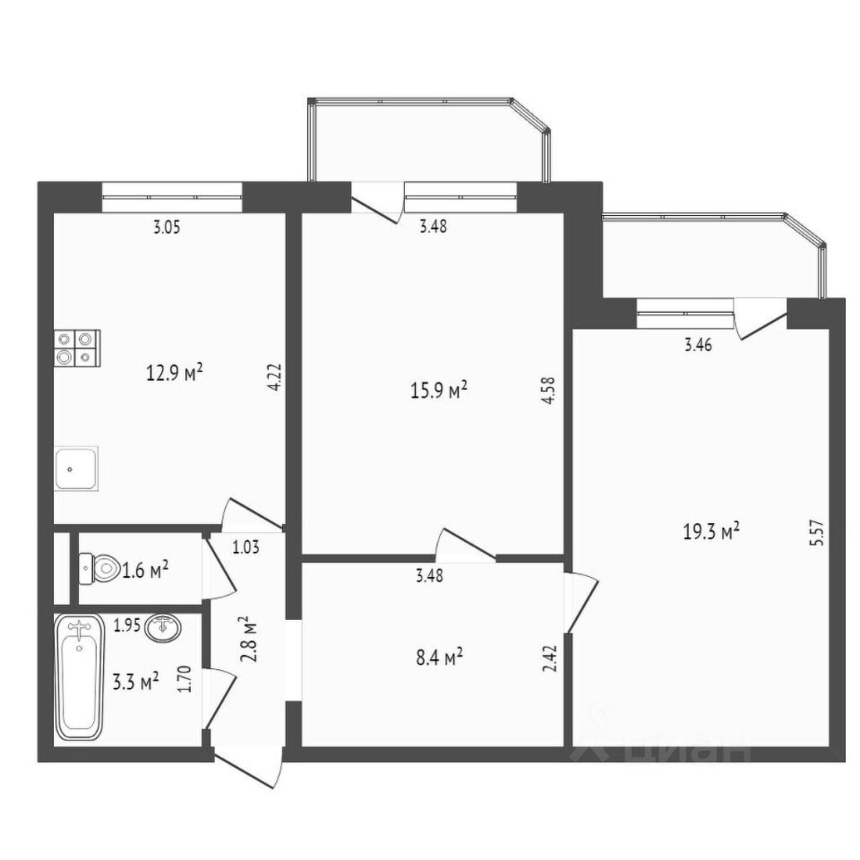 64,2 м²