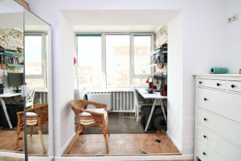 Светлая и уютная: большие окна наполняют пространство солнечным светом.