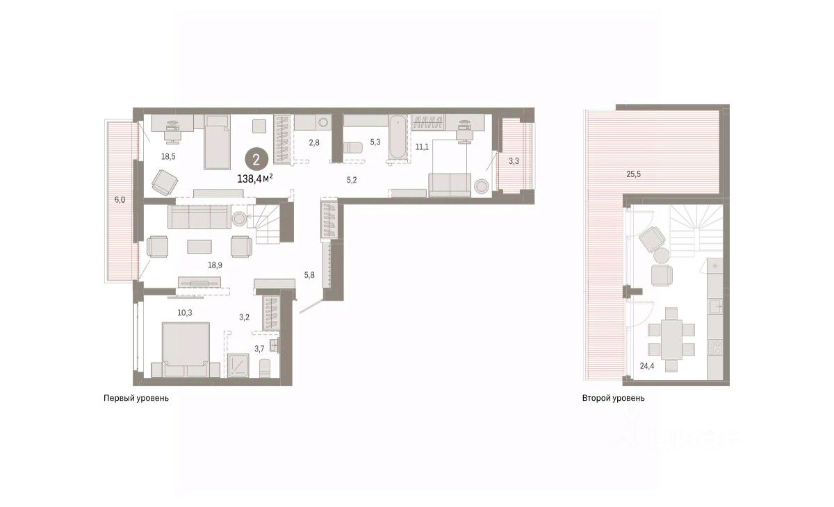 Продается двухкомнатная квартира с предчистовой отделкой в ЖК "Республики 205" на 8 этаже. Общая площадь: 138.43 кв.м. Высота потолков 2.7 м.