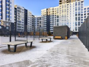 В закрытом дворе находятся детские и спортивные площадки, где дети смогут активно проводить время на свежем воздухе. Он поделен на две зоны: активная, где располагаются детские площадки для разных возрастов и место для спорта с большим теннисным кортом, тихая зона для отдыха и созерцания с природой. Безопасность на территорий жилого комплекса обеспечивается закрытой территорией, видеонаблюдением.