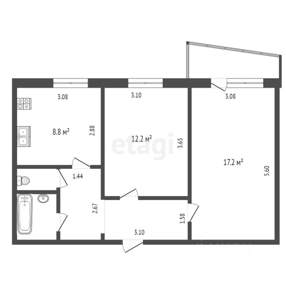 • Общая площадь: 50,8 кв. м.
