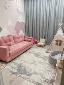 Удобный диван в гостиной(можно сделать угловым), ТВ-зона с подсветкой и местами хранения, кровать 160х200, диван в детской, встроенный шкаф. Большой встроенный кухонный гарнитур с качественной фурнитурой, посудомоечная машина на 60 см (фирмы Воsсh), встроенный холодильник Наiеr, встроенная СВЧ и духовой шкаф, индукционная варочная панель. Обеденный стол из керамогранита 160х80х75 выполненный на заказ.