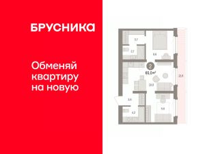 Просторная 2-комн. квартира с предчистовой отделкой в ЖК "Зарека" на 8 этаже. Общая площадь: 65.02 кв.м. Высота потолков 2.7 м.