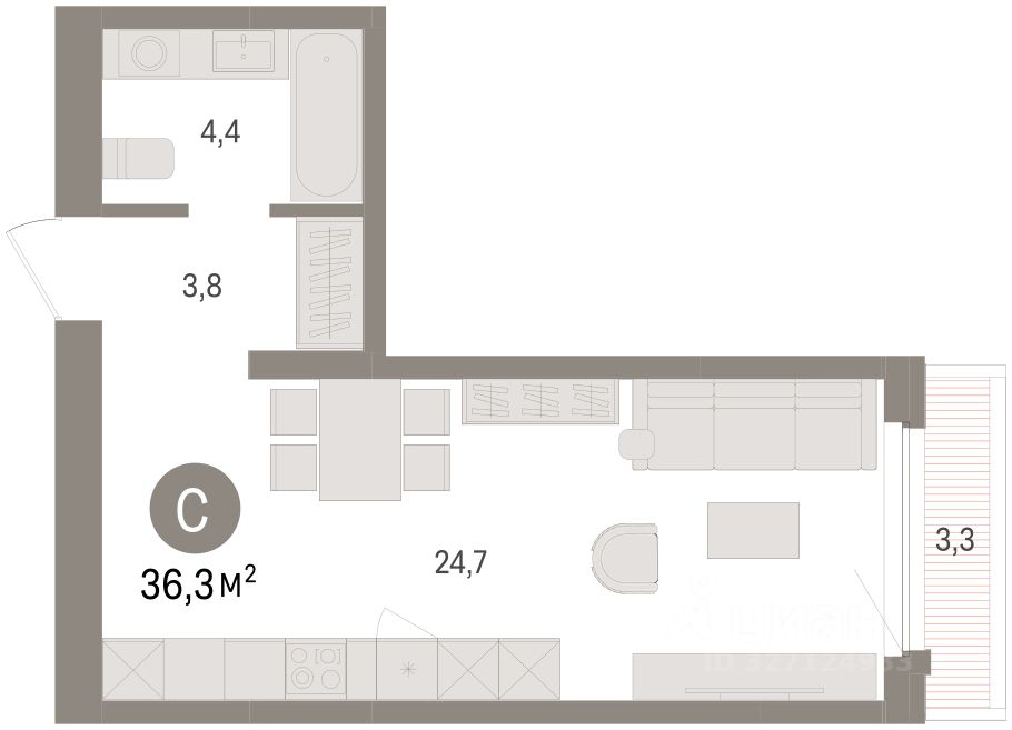 1-комн. студия от застройщика с предчистовой отделкой в ЖК "Зарека" на 10 этаже. Общая площадь: 36.25 кв.м. Высота потолков 2.7 м.
