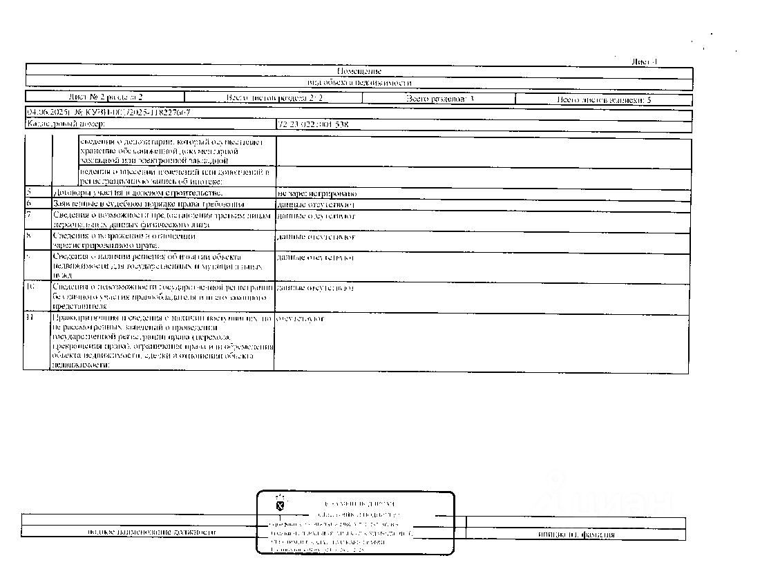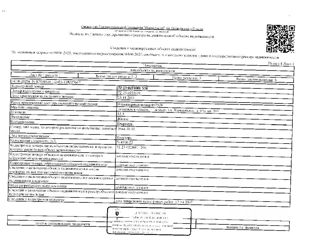 Должник: Администрация г. Тюмени, собственник: Быков Д.В. Лот: Жилое помещение (квартира), площадь 12,3 кв.м, кадастровый номер: 72:23:0221001:538, г. Тюмень, ул. Харьковская, д. 69А, кв. 203 (информация о зарегистрированных лицах - отсутствует, задолженность по капитальному ремонту на 07.11.2025 составляет - 5 т.р), н/ц: 1151920 р., з-к: 1151 р, код: 0014, рег. 72-010405;