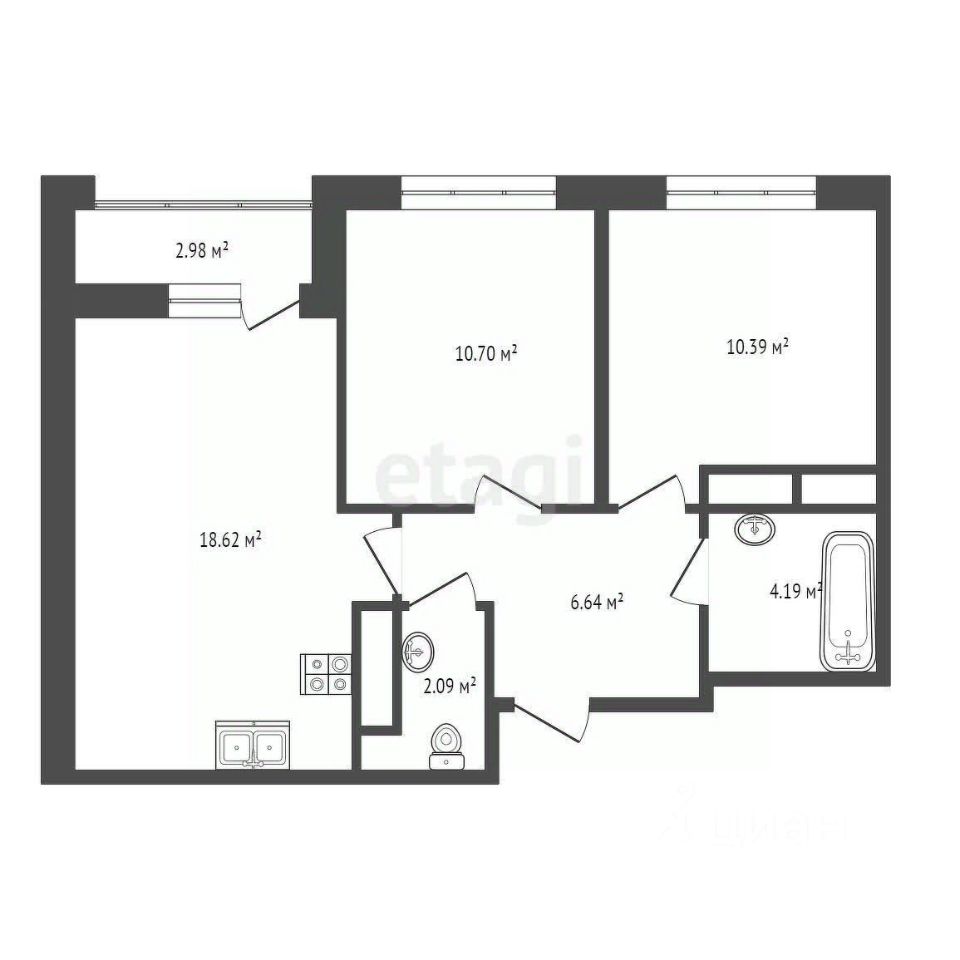 Комнаты - 10,7м2 и 10,3м2