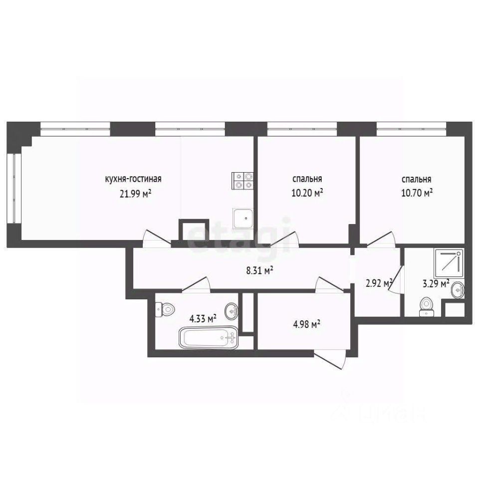 Продается просторная квартира формата 2+, расположенная в развитом и спокойном районе. Ее ключевое преимущество — светлая кухня-гостиная площадью 21 м² с тремя большими окнами, создающими ощущение простора и наполняющими помещение естественным светом. Планировка включает две изолированные спальни и два санузла, что обеспечивает комфорт для семьи или возможности для размещения гостей. В квартире предусмотрена удобная планировочная ниша под организацию гардеробной. Дом оснащен тремя современными пассажирскими лифтами марки KOYO, гарантирующими надежность и бесперебойность. Для владельцев автомобилей доступно парковочное место на охраняемой территории за разумную фиксированную плату. Локация объекта является его значимым преимуществом: в шаговой доступности, в радиусе 200 метров, находятся два детских сада ("Елочка" и "Умка"), Гимназия 4 и Поликлиника 5. Для ежедневных покупок в непосредственной близости расположен супермаркет "Магнит". Рядом с домом начинается благоустроенный сквер "Вьюжный", а в пешей доступности — лесопарковая зона "Комарово Парк", что предлагает отличные возможности для прогулок и отдыха на природе. Данный объект сочетает в себе функциональную планировку, современные технические характеристики дома и развитую инфраструктуру района, создавая условия для комфортной городской жизни.