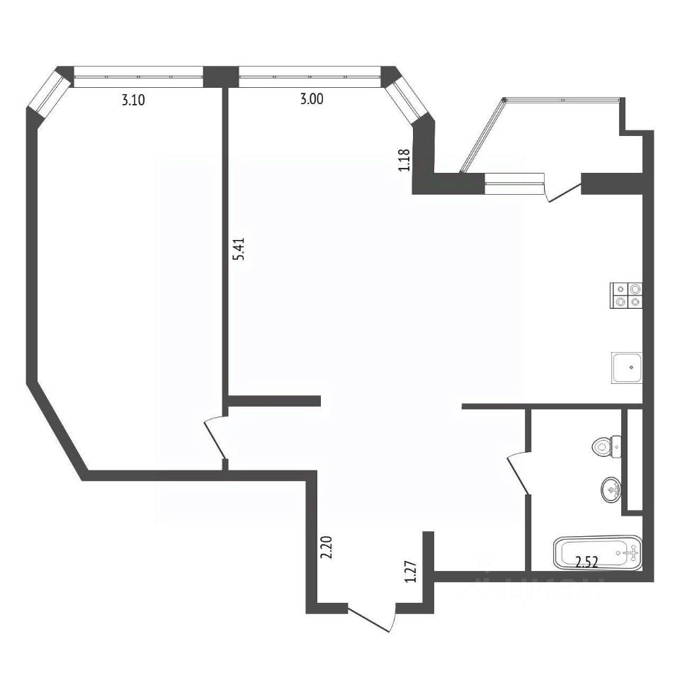 Квартира состоит из просторной кухни-гостиной с выходом на лоджию, одной спальни, совмещенного санузла и прихожей.