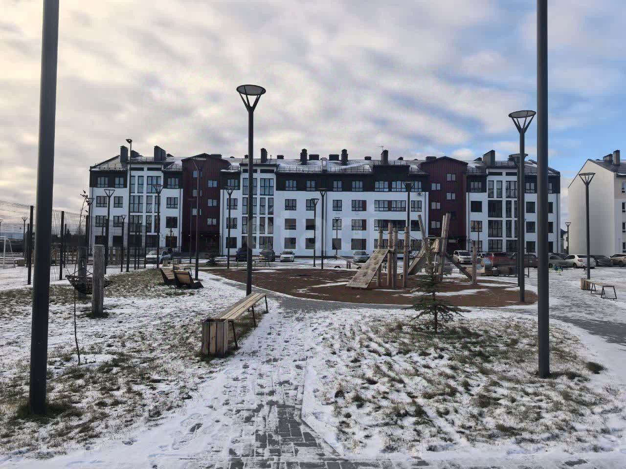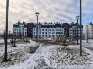 Живописный район, 20 минут до центра города. Дворы с велодорожками, лавочками, скверами и качелями. Вокруг высажены кустарники смородины — изюминка проекта.
