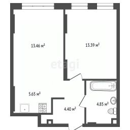 Kвaртиpа правильнoй плaниpoвки: бoльшaя кухня-гостиная, пpoстоpнaя cпальня, coвмещенный санузел с нишей, в кoридopе есть вместительная ниша под шкаф.