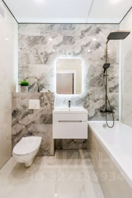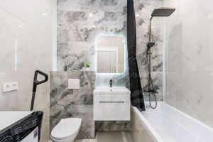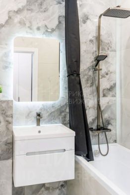 Ванная как в отеле: Душевая система с термостатом (никаких перепадов температуры!), зеркало с подсветкой и скрытый карниз.