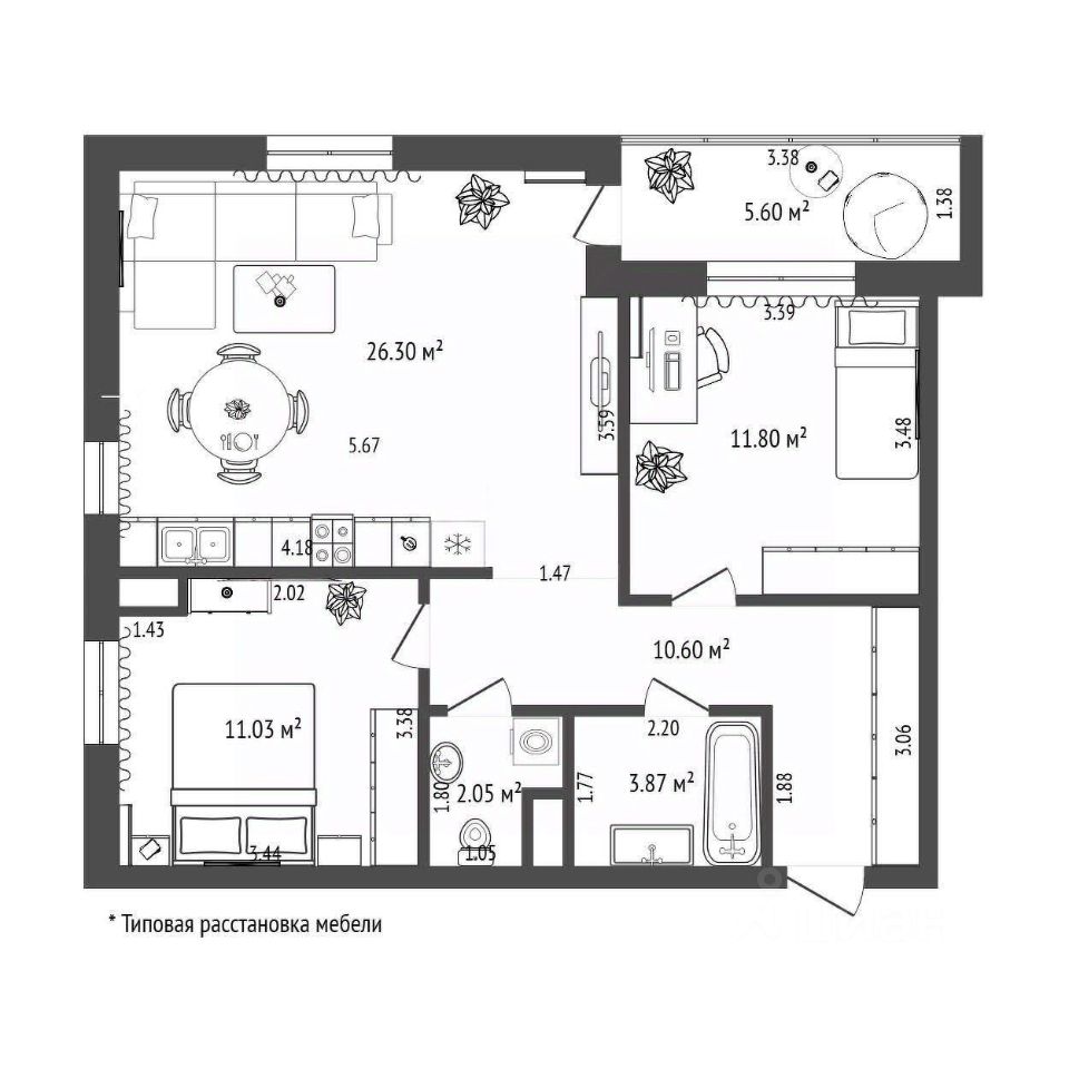 Дополнительный бонус: Просторная лоджия с панорамным остеклением — идеальный уголок для зимнего сада или зоны релакса.