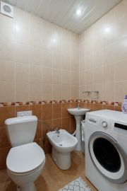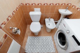Санузлы отделаны качественным кафелем, установлены межкомнатные двери из массива.
